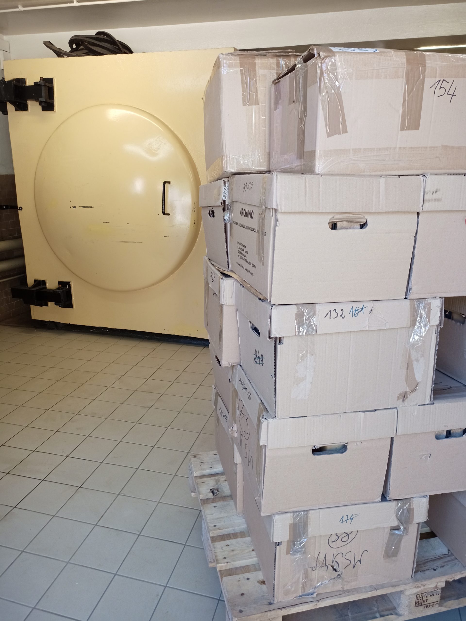 Aktualnie zakończyliśmy prace nad realizacją Zadania 4. Dezynfekcja 7789 woluminów (260 metrów bieżących). W jego ramach przeprowadzono dezynfekcję kolejnej części Księgozbioru Krakowsko-Warszawskiego, najstarszego i najcenniejszego zasobu naszej Biblioteki. W tym roku poddano dezynfekcji zbiory z bibliotek seminariów Wydziału Teologicznego Uniwersytetu Jagiellońskiego: Filozofii Chrześcijańskiej, Starego Testamentu, Nowego Testamentu, Prawa, Teologii Fundamentalnej, Homiletyki, Historii Dogm. i Patrologii, Dogmatyki, Sztuki Kościelnej. W sumie dezynfekcją zostało objęte 7789 woluminów. Podobnie jak poprzednio, dezynfekcja jest związana z sukcesywnym przenoszeniem całości tego księgozbioru do magazynu Pracowni Starych Druków i Zbiorów XIX-wiecznych, do którego trafiają najcenniejsze zbiory Biblioteki UKSW. Zbiory po dezynfekcji nie są przechowywane wraz z resztą księgozbioru.